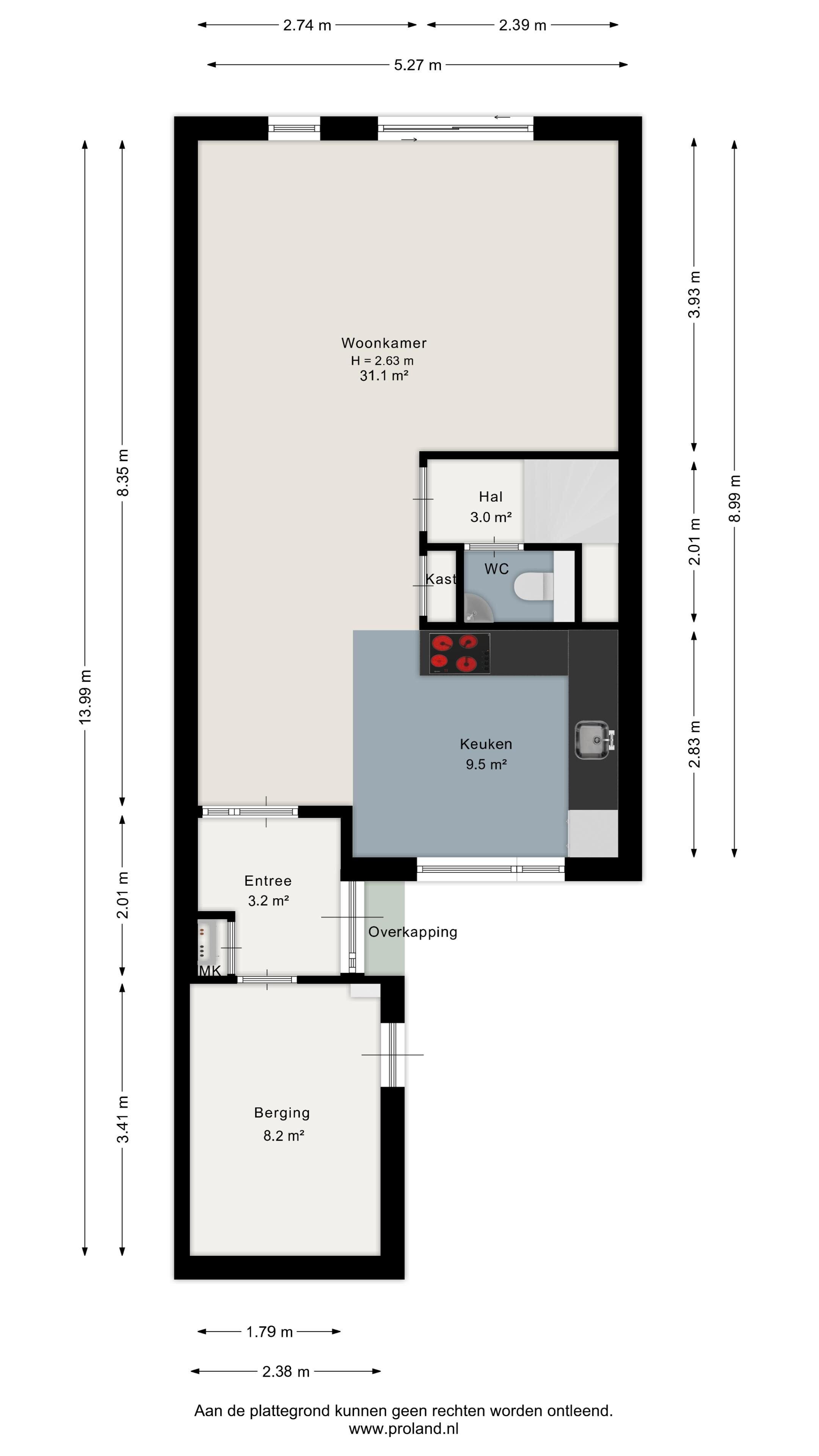 - 83 m² (15,00 meter diep en 5,50 meter breed)